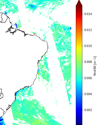 The MODIS-Aqua Daily Remote Sensing Reflectance (Rrs, unit sr-1) provides 8 spectral bands, temporal resolution of one month, and spatial resolution of 1 km over the Brazilian oceanic waters and the open ocean South Atlantic waters. This collection captures 7 visible and 1 infrared channels using Level-1A images acquired from the Moderate Resolution Imaging Spectroradiometer (MODIS) instrument onboard NASA's Aqua satellite. The Level-1A data were processed into Level-1B and GEO using the Data Processing Tools (modis_L1B) from SeaWiFS Data Analysis System (SeaDAS) software. The Level-1B and GEO data were applied in the atmospheric correction OC-SMART (Fan et al., 2021) by the National Institute for Space Research (INPE, Brazil) and the Laboratoire d'Océanologie et de Géosciences (LOG, France), generating the Level-2 data. The Level-2 data has been mosaicked to generate daily maps capturing the complete Brazilian ocean waters. The daily mosaic data were reprojected to geographical (lat/lon) coordinates using the European Space Agency (ESA) Ocean Colour - Climate Change Initiative (OC-CCI) as a reference, then aggregated into a Level-3 grid. Both, the mosaic and the reprojection were done using the Sentinel Application Platform (SNAP).