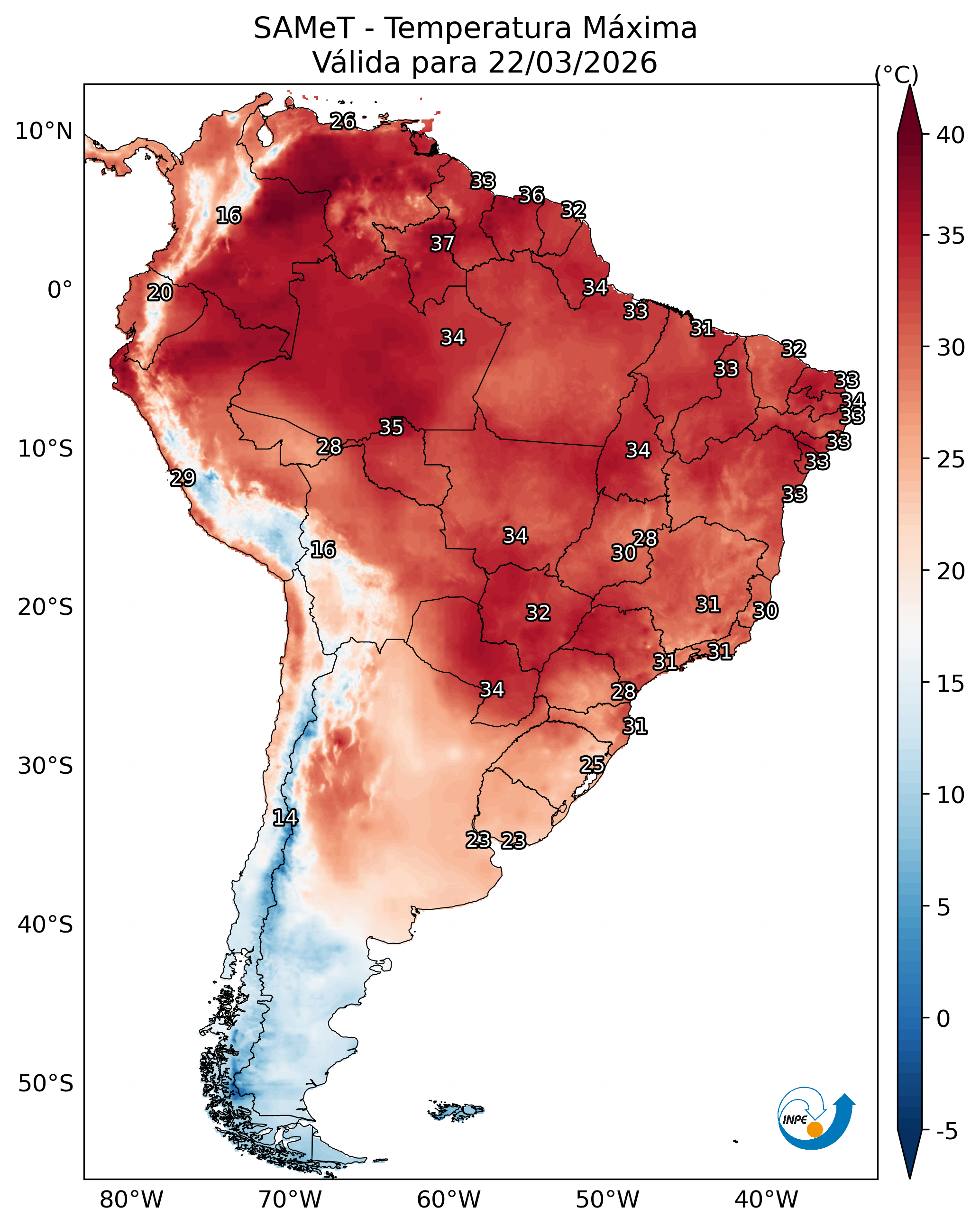 South American Mapping of Temperature (SAMeT) is a newly developed product and operationally available for South America through the National Institute for Space Research (CPTEC / INPE) Weather Forecast and Climate Studies website. This product combines the observed data with the ERA5 reanalysis, making a correction of the temperature field using an estimated lapse rate. The Lapse Rate was estimated for four regions located over South America, and for the four seasons of the year. The estimated values for the Lapse Rate were, in all situations, lower than the standard Lapse Rate (-6.5 °C·km-¹). The combination of reanalysis and observations, together with the correction of the Lapse Rate produced more accurate temperature fields than those provided by ERA5, especially in regions with more accentuated topography.